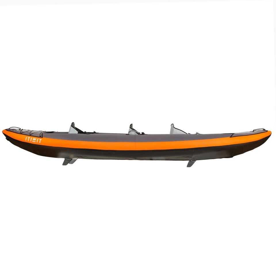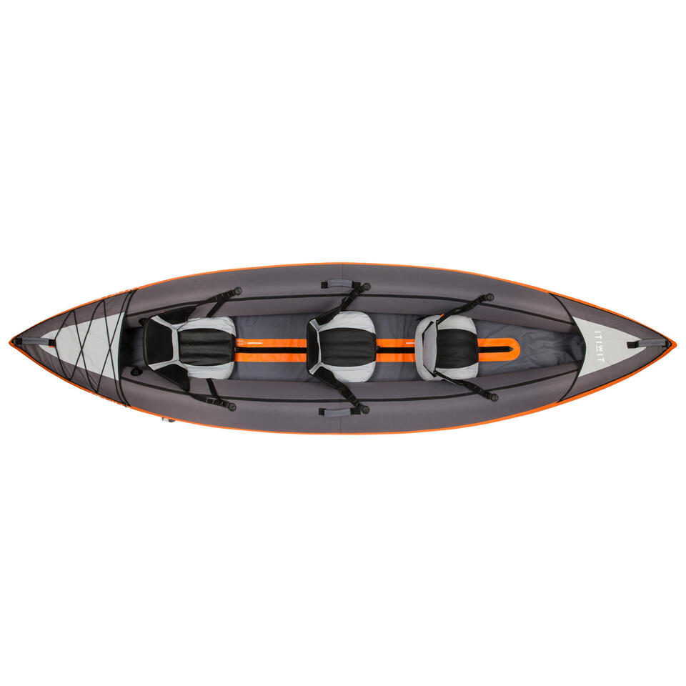 Model mniejszy (zielony) jest dedykowany dla maksymalnie dwóch osób i tyle ma miejsc, natomiast większy (pomarańczowy) dysponuje trzema siedzeniami. Wygodę wiosłujących zapewniają dmuchane siedzenia z oparciami, dzięki którym nie siedzimy na dnie.