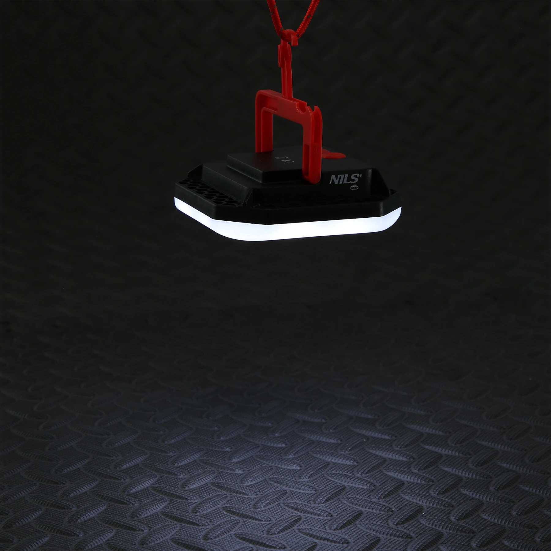 Lekka i kompaktowa lampa kempingowa LED 220 lm NILS NC0007 – idealna na biwak, namiot i każdą wyprawę outdoor. Posiada 3 tryby świecenia, funkcję USB do ładowania lampy i urządzeń oraz wodoodporność IPX5. Dzięki uchwytowi i wysuwanej podstawce możesz ją zawiesić lub postawić, a niewielka waga (170 g) sprawia, że zmieści się w każdym plecaku.