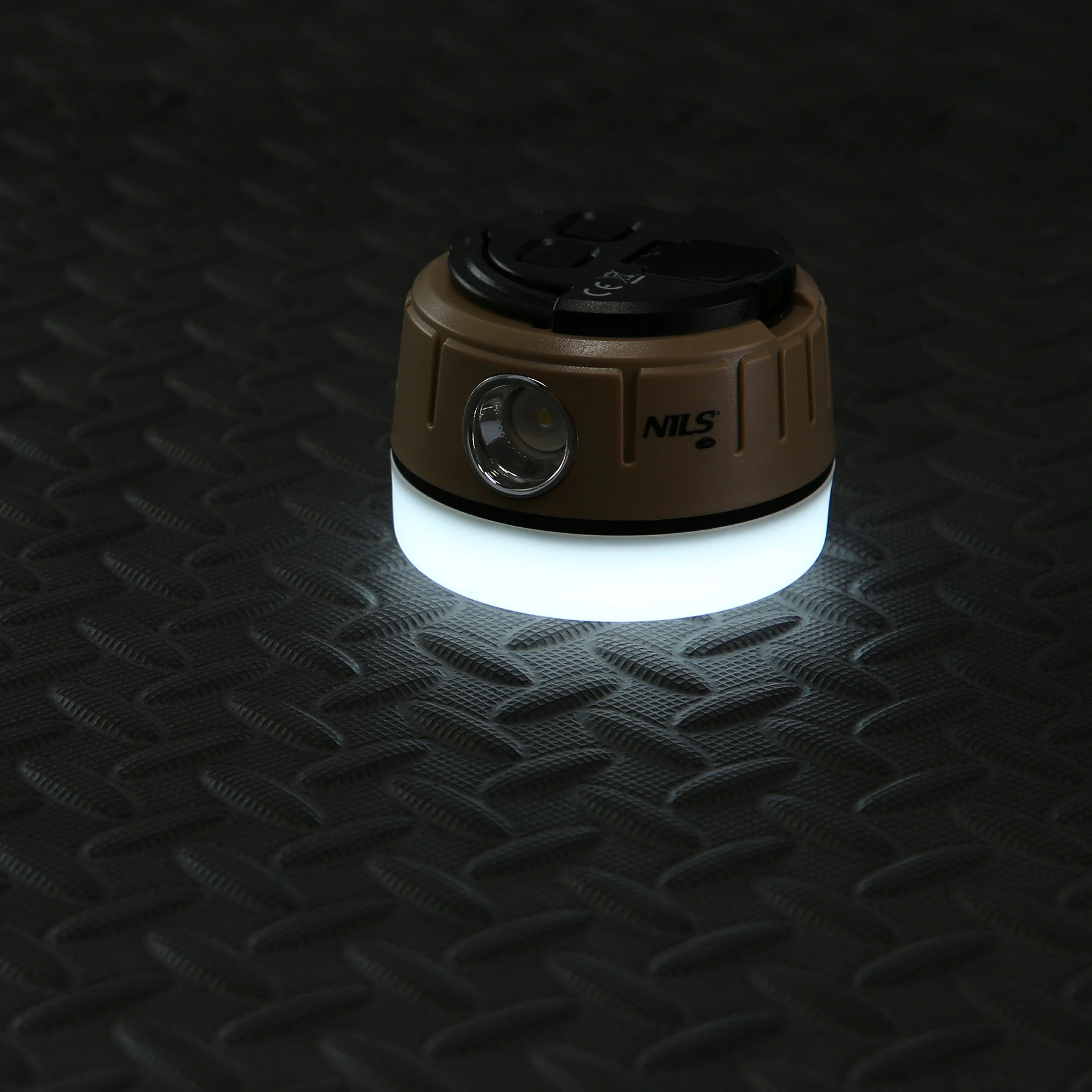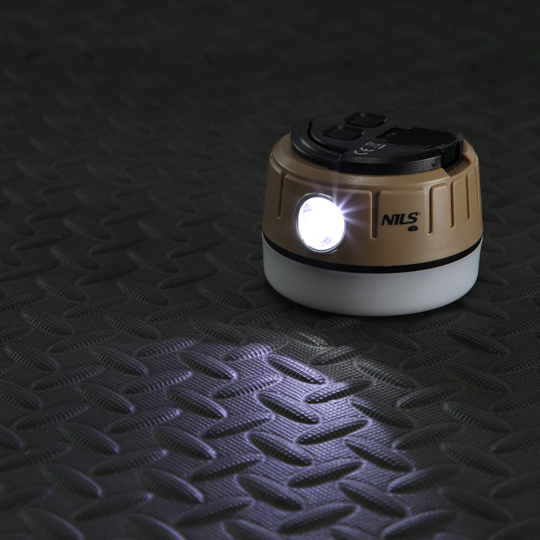 NILS CAMP NC0005 to kompaktowa i wydajna lampa kempingowa LED, która zapewni jasne światło w każdych warunkach – na biwaku, pod namiotem, na działce czy podczas awarii prądu.