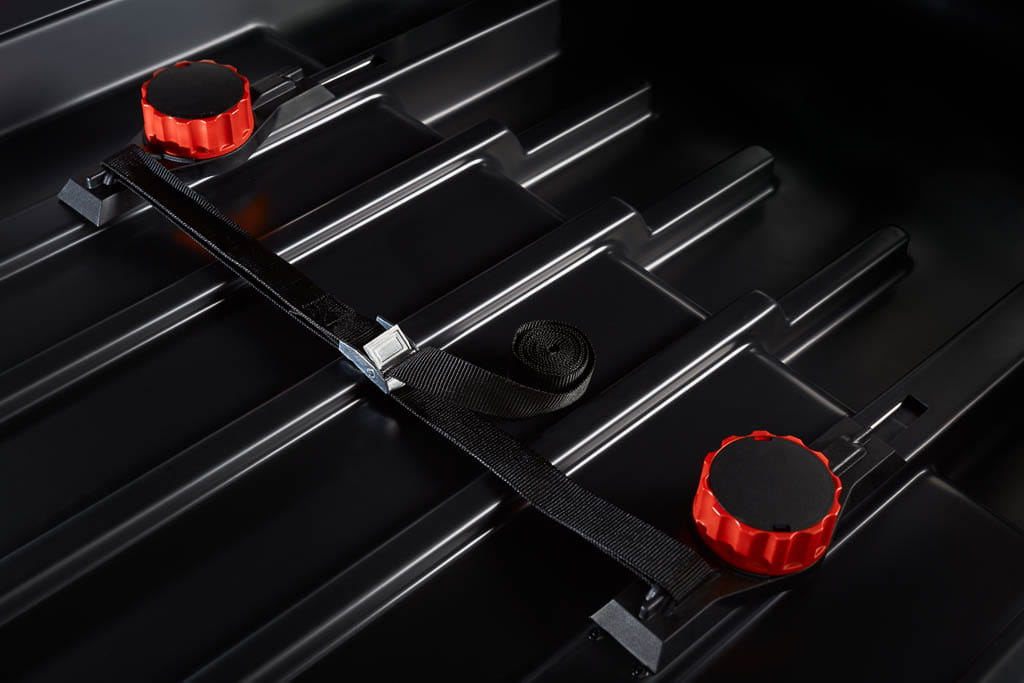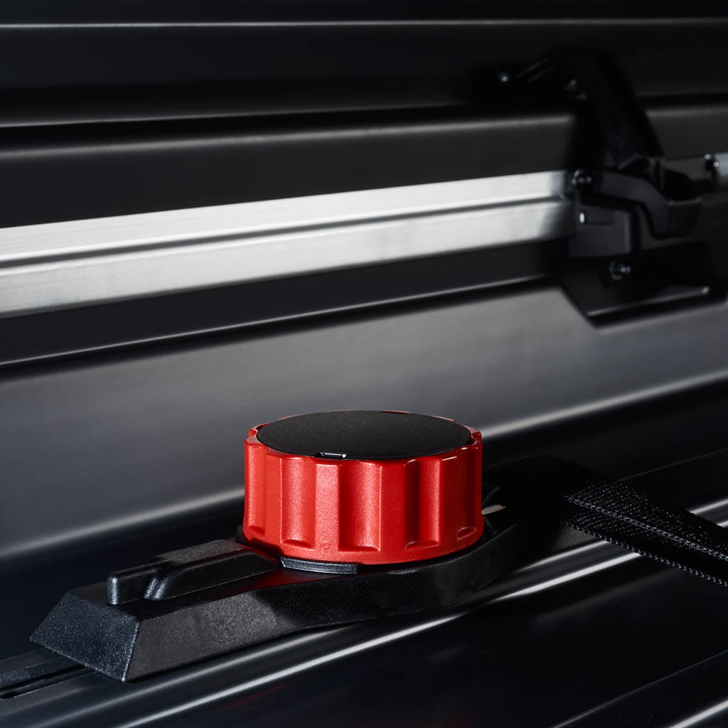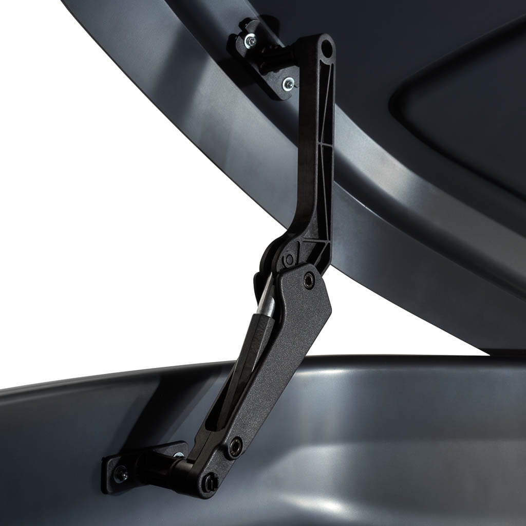 Ten boks dachowy czarny mat 500L łączy w sobie sportowy wygląd i funkcjonalność premium. Dzięki dużej pojemności i przemyślanej konstrukcji bez problemu zmieścisz: