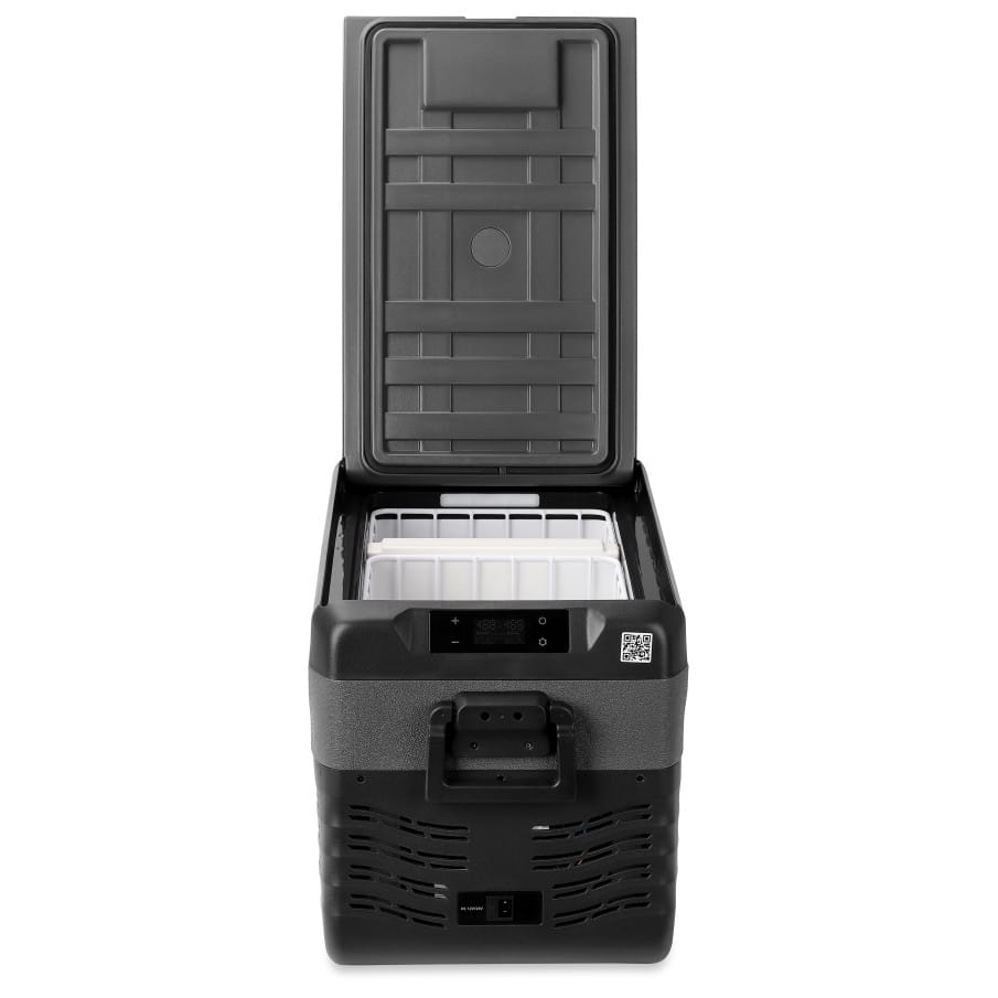 Yolco KX30 CARBON to kompaktowa lodówka kompresorowa o pojemności 25 L (28 L po wyjęciu przegrody), która chłodzi i mrozi w zakresie od +20°C do -20°C. Dzięki technologii Dual-Zone możesz korzystać z dwóch oddzielnych komór z niezależnym sterowaniem lub powiększyć jedną z nich, usuwając ściankę działową.
