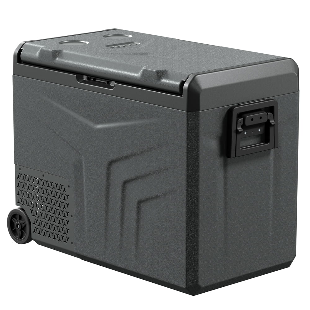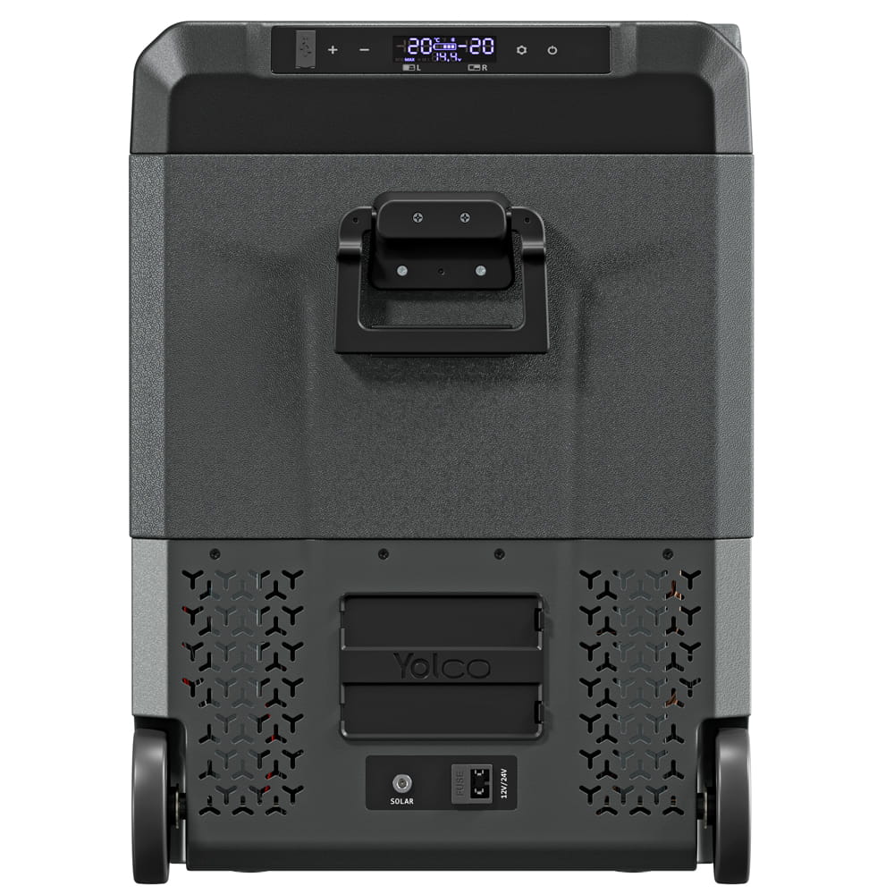 Przenośna lodówka kompresorowa Yolco TCX50 CARBON ❄️ – pojemność 50 L (52 L bez przegrody), zakres temperatur +20°C do -20°C, dwie komory z systemem Dual-Zone, zasilanie 12/24 V, 230 V, baterie lub panele solarne ☀️. Sterowanie przez Bluetooth, funkcja powerbanku, cicha praca 45 dB. Idealna na kemping, do kampera i na działkę 🚐⛺🌴.