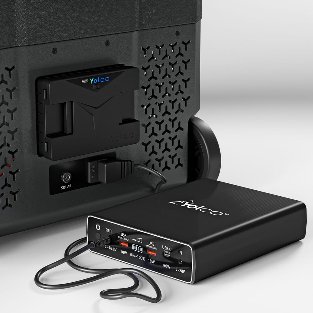 ⚡ Szerokie możliwości zasilania – gniazdo zapalniczki 12/24 V, zasilanie sieciowe 100–240 V, opcjonalne baterie modułowe lub zewnętrzne Yolco (ładowane także panelami solarnymi ☀️).